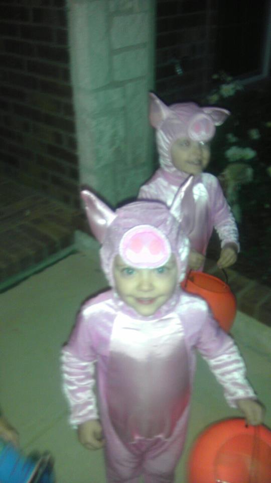 As usual Jeff and I have been too busy to think much less update the blog. Since I am home sick today, I thought I would catch everyone up. Let's start with Halloween. Lily decided that her brother and sisters would dress up as piggies. Jeff and I tried to go with a Little Red Riding Hood theme, but our follow through left something to be desired. Lily didn't want to be part of the group even though it was her idea. She wanted to be a witch. The twins and Lawson loved their costumes. The twins would walk around snorting like pigs. It was pretty cute. When they figured out that all they had to do to get candy was say Trick or Treat, it was on. Here are some pictures of Lily and the Twins after their first trick or treat. They are all very excited.